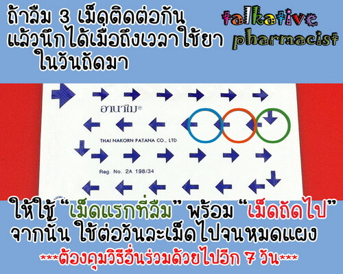 จากนั้นก็รับประทานต่อตามลำดับวันละเม็ด ในเวลา 21.00 น. ไปเรื่อย ๆ จนกว่าจะหมดแผง