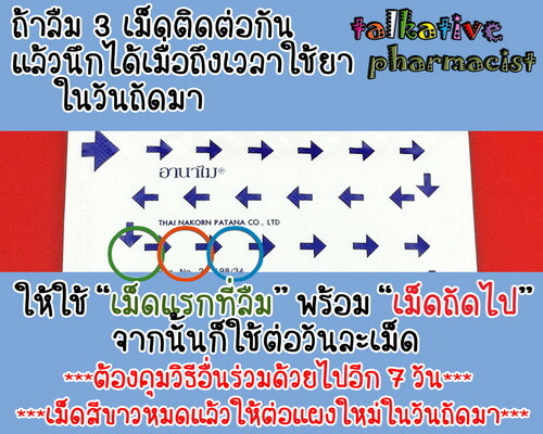 ลืมรับประทานยาคุม “อานาไม” ต่อเนื่องกัน 3 เม็ด หรือมากกว่า ตั้งแต่ 72 ชั่วโมงขึ้นไป และเม็ดยาที่ลืม อยู่ในแถวที่ 3 หรือ 3+4