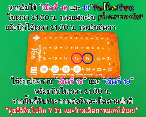 เมื่อยังไม่ถึงเวลารับประทานยาคุมประจำวัน ก็ให้รับประทาน “เม็ดที่ 18” ซึ่งเป็น “เม็ดแรกที่ลืม” ทันทีที่นึกได้ในเวลา 08.00 น. นั่นเอง