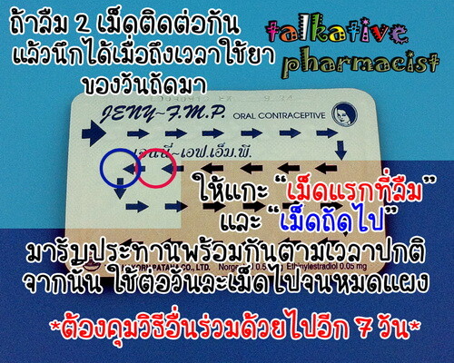 ลืมรับประทานยาคุม “เจนนี่ เอฟ.เอ็ม.พี.” ต่อเนื่องกัน 2 เม็ด หรือมากกว่า ตั้งแต่ 48 ชั่วโมงขึ้นไป และเม็ดยาที่ลืม อยู่ในแถวที่ 2 หรือ 2+3