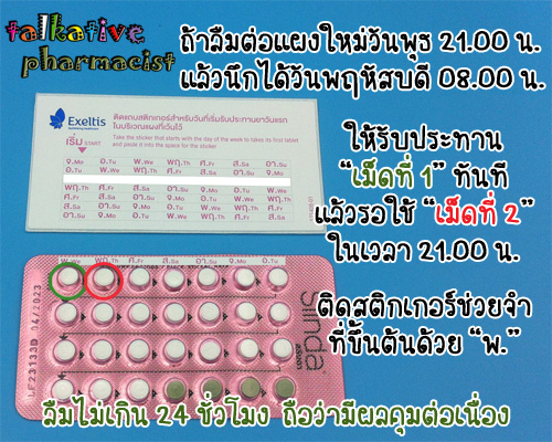 ซึ่งถ้าลืมต่อ “สลินดา” แผงใหม่ แต่นึกได้และแก้ไขได้โดยไม่เกิน 24 ชั่วโมง ก็ถือว่ายังมีผลคุมกำเนิดต่อเนื่องกัน