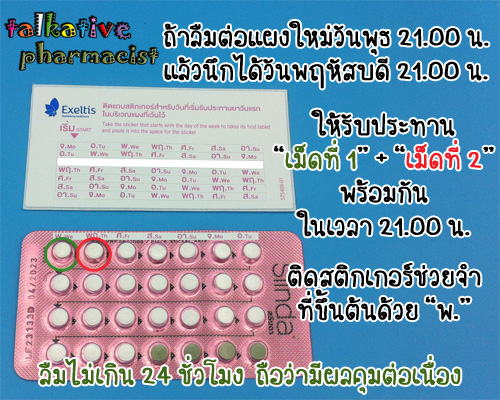 จากนั้นก็รับประทานยาคุมต่อวันละเม็ดตามปกติ เมื่อหมดแผงนี้แล้วก็ต่อแผงใหม่ในวันถัดมา