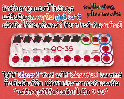 ส่วนเม็ดอื่น ๆ ที่ลืมใช้ ได้แก่ “เม็ดวันพุธ”, “เม็ดวันพฤหัส” และ “เม็ดวันศุกร์” ให้ทิ้งไปได้เลย